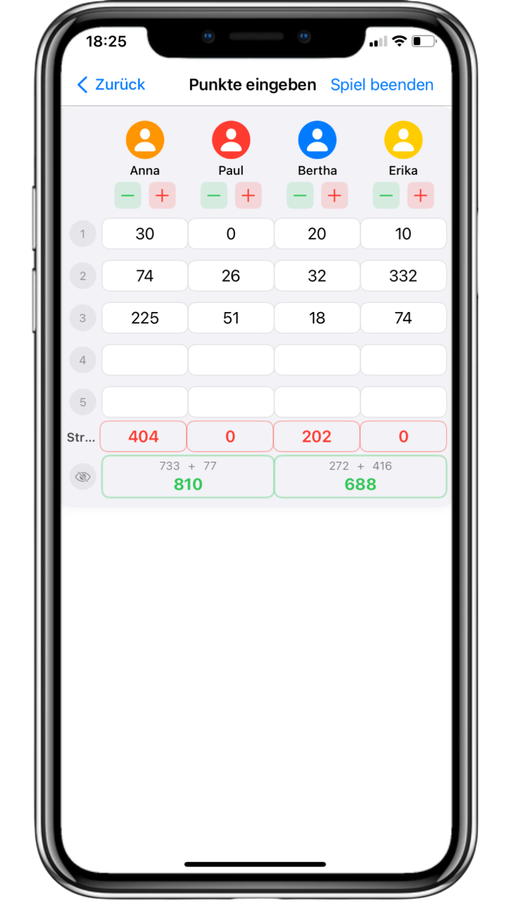 Tippen Sie auf dem Punkteeingabebildschirm auf die Schaltfläche „Spiel beenden“.