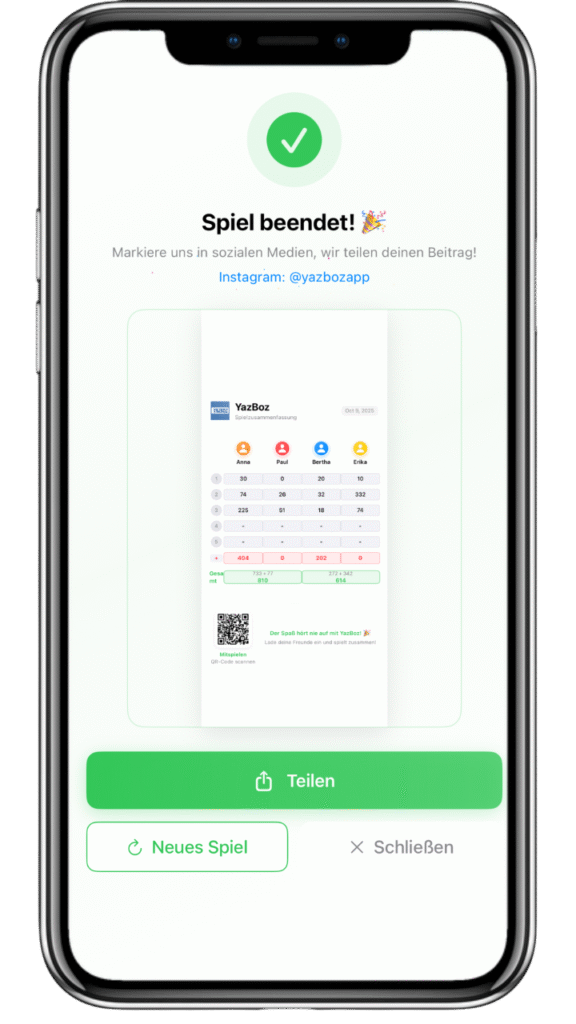 Beginnen Sie das Spiel und aktualisieren Sie die Punktestände Runde für Runde – YazBoz kümmert sich um den Rest.